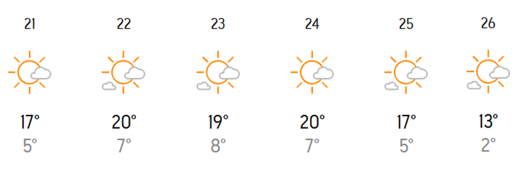 Kongremiz süresince havanın parçalı bulutlu ve gündüzleri 20 0C civarında olacağı tahmin edilmektedir. Geceleri hava sıcaklığının 10 0C’nin altına ineceği tahmin edilmekte olup, gelirken yanınızda bir ceket veya mont almanızı tavsiye ediyoruz. Özellikle 25 Ekim 2025 tarihindeki Afyon-İscehisar Mermer Ocakları ve Frig Vadisi gezisi sırasında, yanınızda arazide giyebileceğiniz ayakkabı, mont ve şapkanızın olmasını tavsiye ederiz.